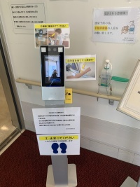 ・正面玄関にて、手首温度検知システムによる検温を実施しております。